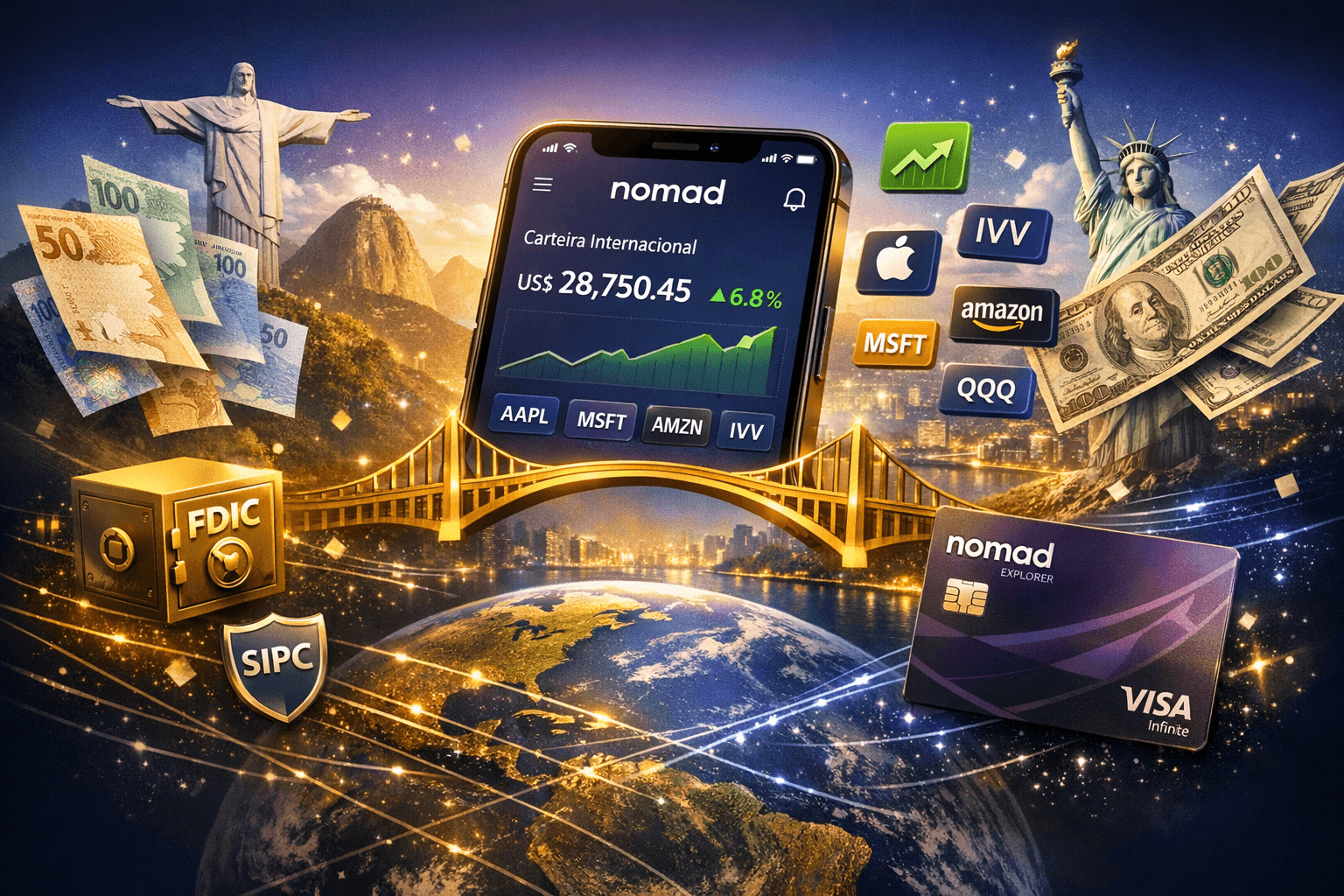 Investir em dólar com a Nomad em 2026 é mais acessível do que nunca. Com investimento mínimo de US$ 1, taxas competitivas e proteção robusta do FDIC e SIPC, você pode começar a diversificar seu patrimônio internacionalmente mesmo com pouco capital .