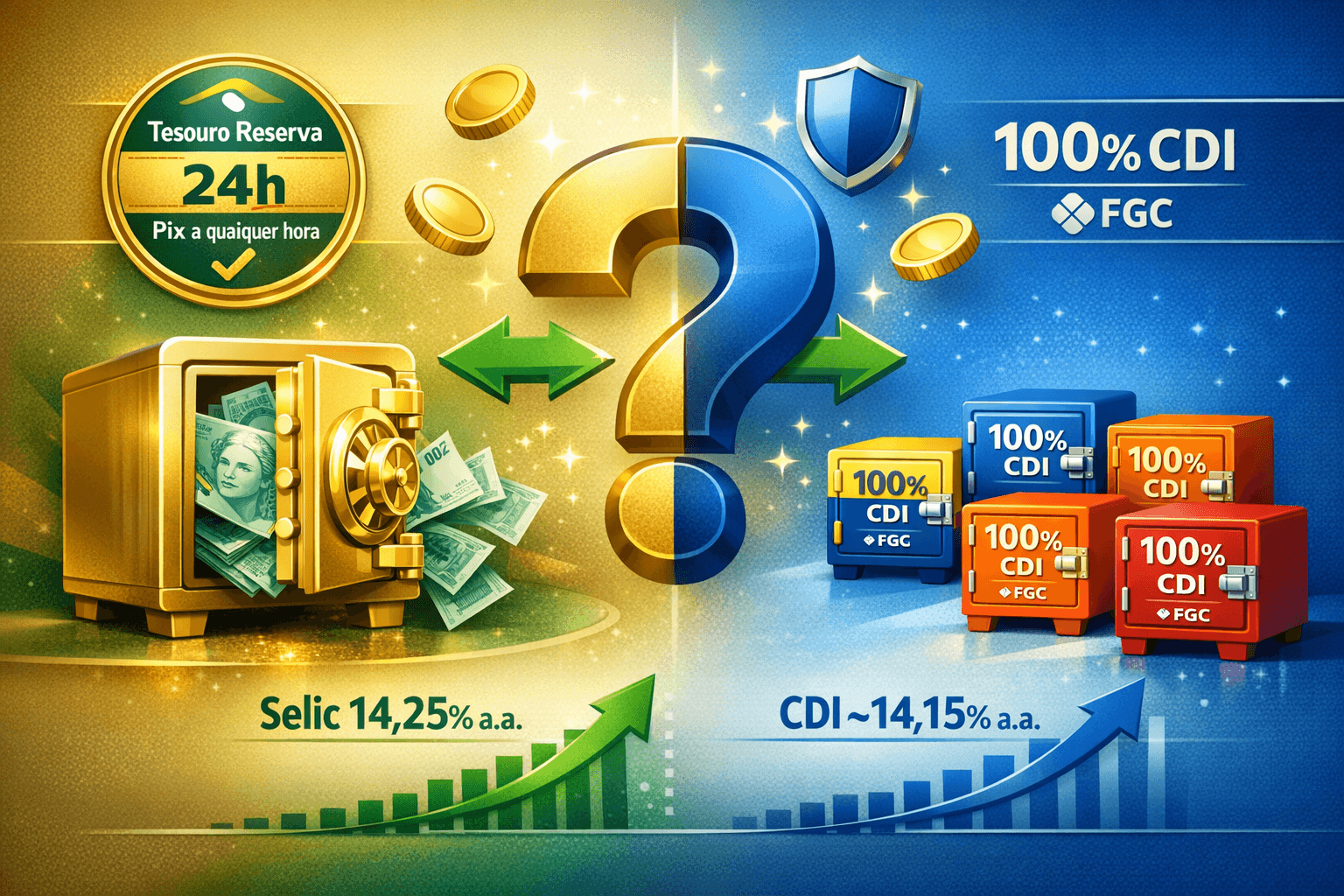 Mas em 2026, uma novidade promete mudar o jogo: o lançamento do Tesouro Reserva, um título público com liquidez 24 horas por dia, 7 dias por semana, via Pix . Isso reacende a velha dúvida: afinal, é melhor deixar a reserva no Tesouro Selic tradicional, no novo Tesouro Reserva ou nos CDBs dos bancões?